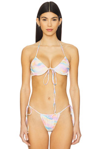 - 83% polyester 17% elastane - Made in Thailand - Hand wash cold - Front, back, and halterneck tie closures - Unpadded underwire cups - Item not sold as set - Midweight swim fabric - Revolve Style No. BANH-WX266 - Manufacturer Style No. 2510402PNT