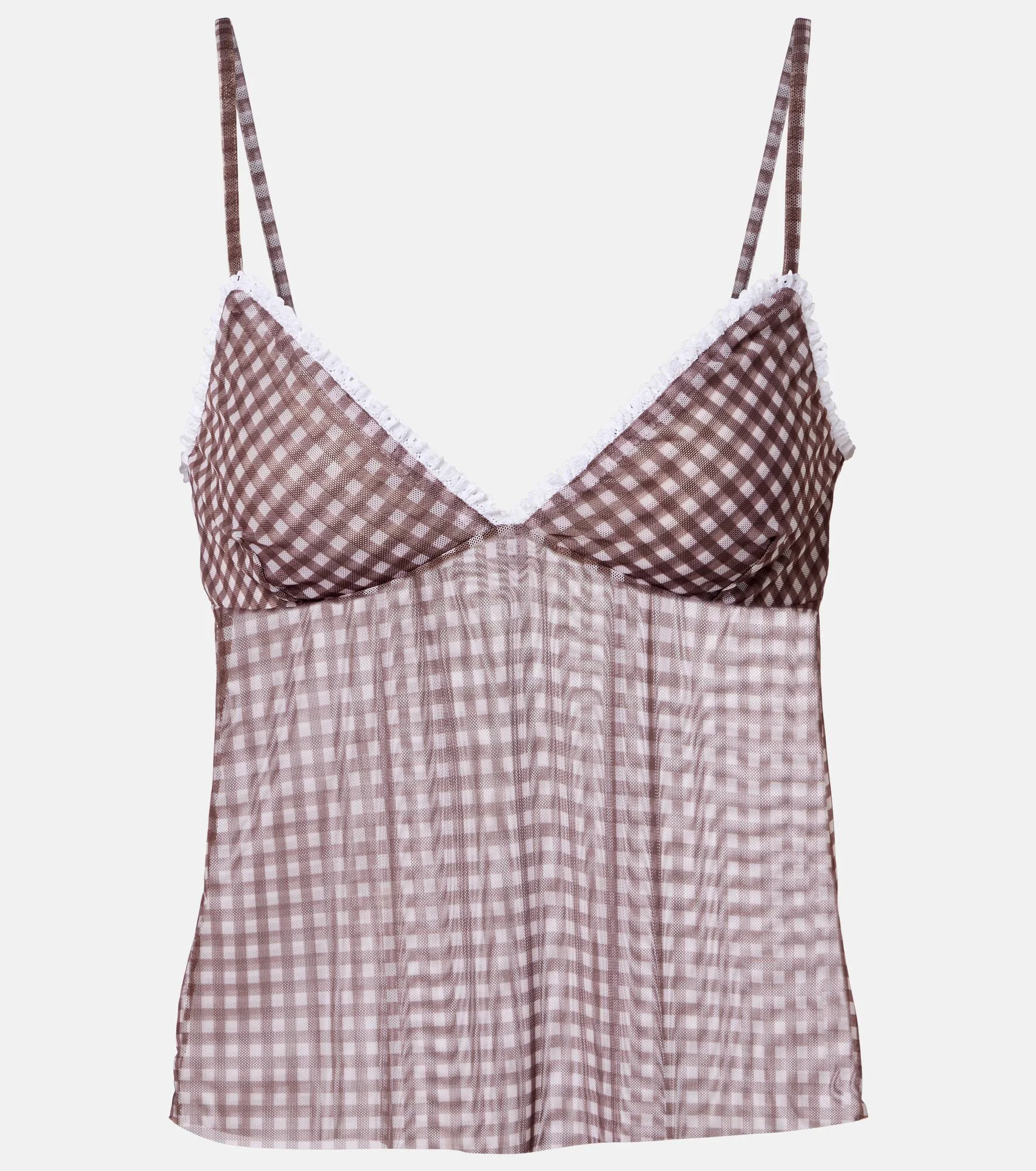 Bananhot's designs are certain to give you an instant boost of confidence. The Solay top is crafted with a semi-sheer construction and charming all-over brown-hued gingham print. Product Details - Material: 95% nylon, 5% elastane - Care instructions: machine wash at 30 degrees - Made in Israel - Color: brown - Designer color name: Brown Gingham - Item number: P01136776 Size & Fit - True to size - Sheer - Cinched waist - Stretchy fabric - Slightly cropped - The model seen in the picture is 178cm-5'10" and wearing a size XS