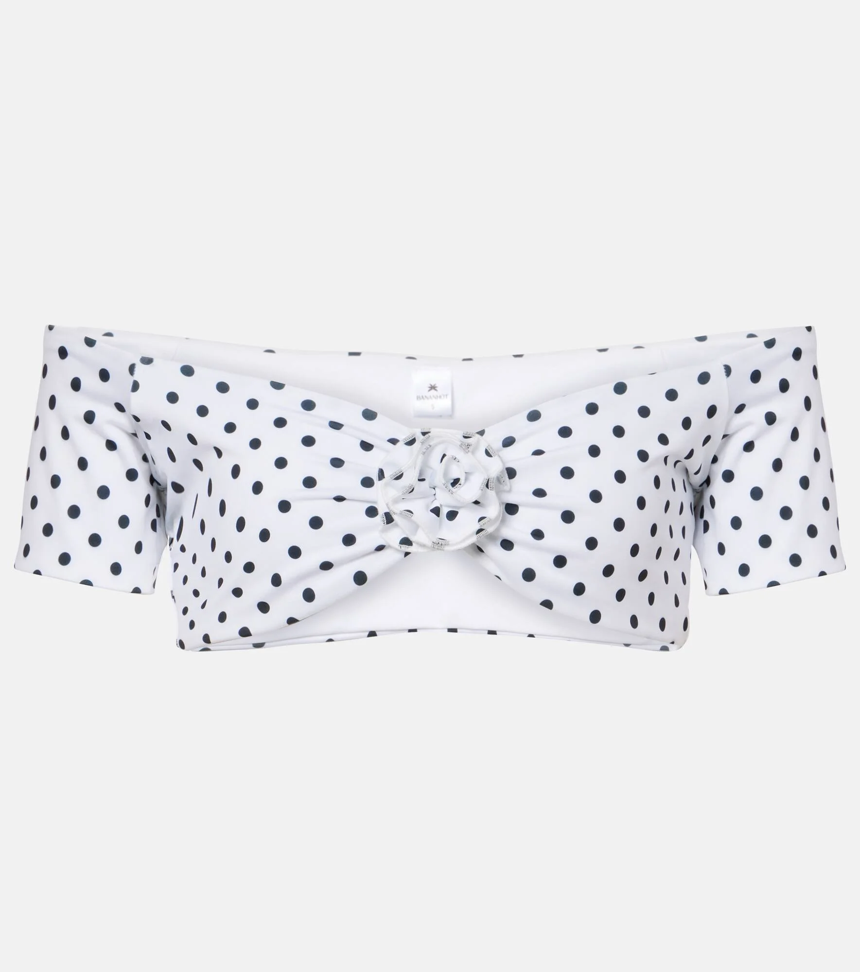 Entrance-making beachwear from Tel Aviv-based brand Bananhot is a requisite for glamorous sun-drenched escapes. The Stefani polka-dot crop top is shaped to accentuate the silhouette with its off-shoulder design and features a floral-applique. Product Details - Material: 83% polyester, 17% elastane - Care instructions: hand wash - Made in Israel - Designer color name: White Polka - Item color: white, black - Elasticated waistband - Item number: P01076721 Size & Fit - True to size - Off-the-shoulder - Fitted - Stretchy fabric - Cropped - The model seen in the picture is 178cm-5'10" and wearing a size XS