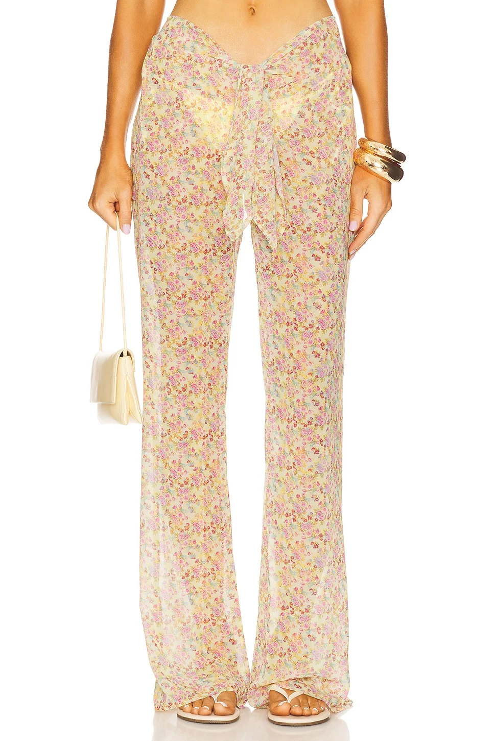 - 100% polyester - Made in Israel - Hand wash - Front tie closure - Allover floral detailing - Lightweight georgette fabric - Garment is intentionally sheer, undergarments will show through - Please note undergarment not included.18" at the knee breaks to 22" at the leg opening - Revolve Style No. BANH-WP20 - Manufacturer Style No. 2510901PNT