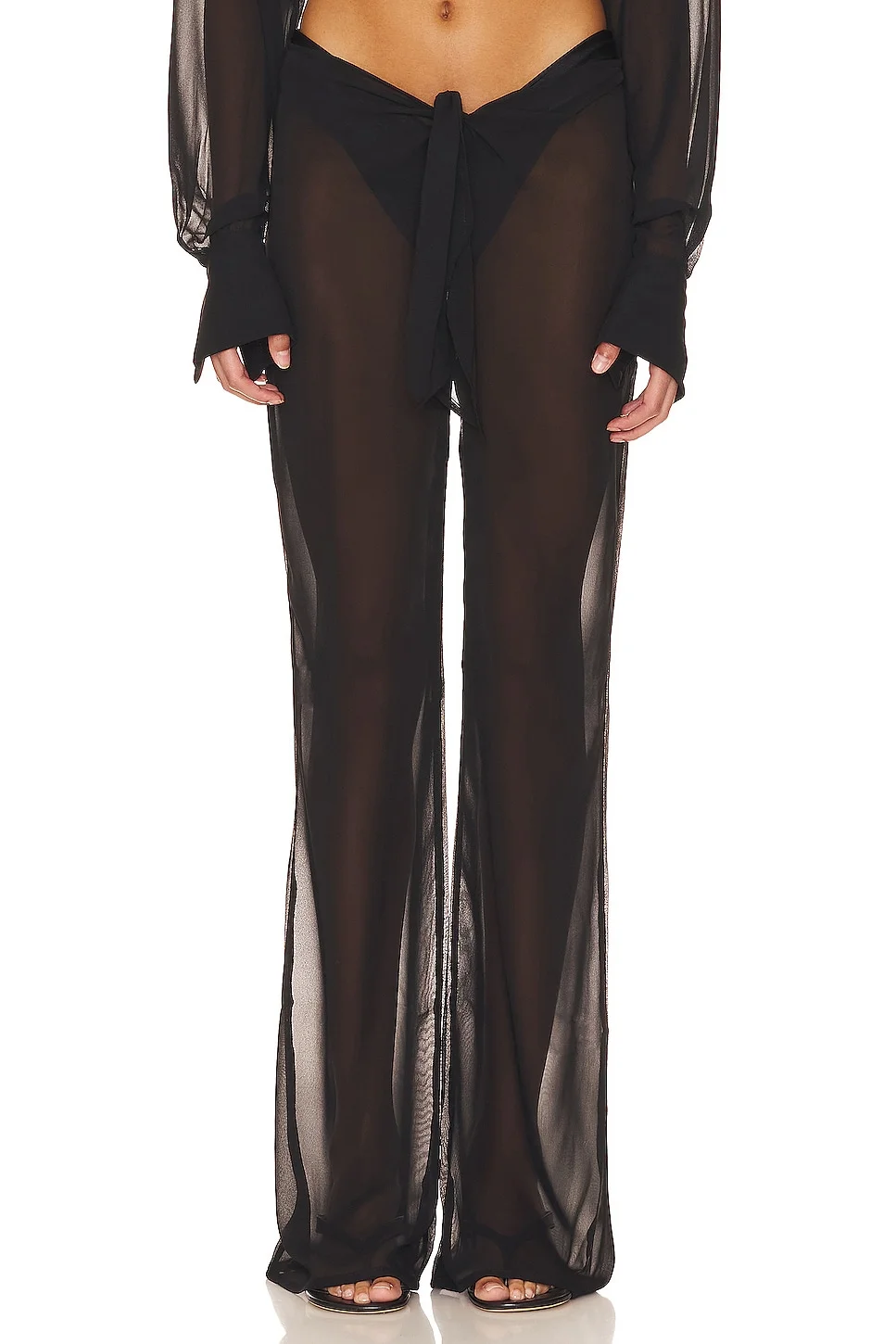 - 100% polyester - Made in Thailand - Hand wash - Front tie closure with draped detail - Sheer mesh fabric.16" at the knee breaks to 22" at the leg opening - Revolve Style No. BANH-WP9 - Manufacturer Style No. 231703