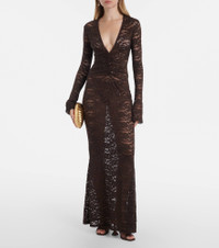 Turn to Bananhot for effortlessly chic styles, like the Tyler maxi dress. This form-fitting design is made from floral lace with a plunging neckline and ruched detailing on the front. Product Details - Material: 90% nylon, 10% elastane - Care instructions: hand wash - Made in Thailand - Designer color name: Brown Lace - Item color: brown - Item number: P01112267 Size & Fit - True to size - Sheer - Fitted - Stretchy fabric - The model seen in the picture is 178cm-5'10" and wearing a size XS
