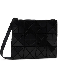 Mesh shoulder bag in black. · Triangular faux-leather logo appliques throughout · Adjustable crossbody strap · Zip closure · Zip pocket at interior · Patterned textile lining · H9" x W7" Supplier color: Matte black Textile, synthetic. Made in Japan 252730F048010