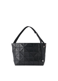 This shoulder bag is characterized by its dynamic, three-dimensional look, made from leather-like matte material and composed of large triangular pieces. It can be hung from one shoulder or across the body by adjusting the strap length. The cushioned strap is ideal for cyclists or active people who are often on the move for work. The bag's size allows it to hold a 13-inch laptop. Product Information Surface: PVC resin Base fabric: 100% polyester Lining: 100% nylon Tape: 100% nylon Country of origin: Japan inside pocket:can be Opening/closing part:fastener