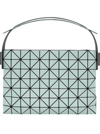 Mesh shoulder bag. · Signature triangular vinyl appliques in blue · Adjustable shoulder strap · Zip closure · Logo-woven zip pocket at interior · Unlined · Logo-engraved gunmetal-tone hardware · H7.5" x W11" x D2" Supplier color: Pearl blue Textile, synthetic. Made in Japan 252730F048000