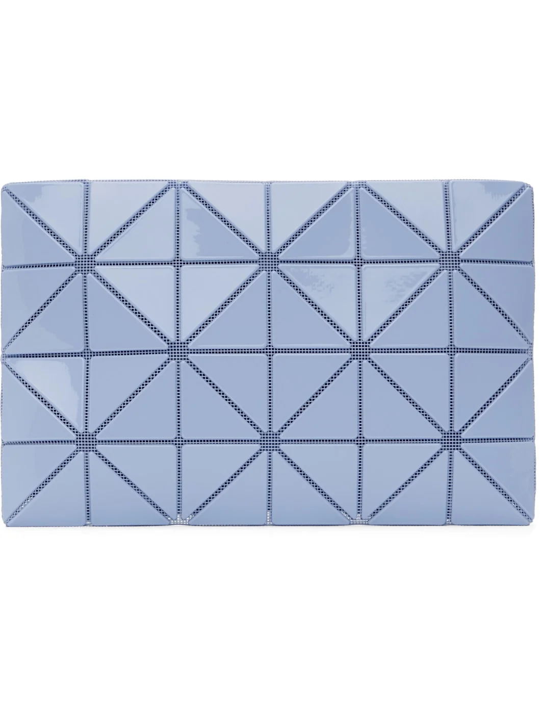 Mesh pouch in blue. · Triangular glossy polymer appliques throughout · Zip closure · Patterned textile lining · H6.25" x W9.5" Supplier color: Light blue Textile, polymer. Made in Japan 252730F045000
