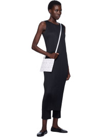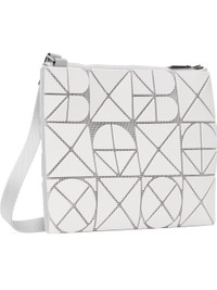 Mesh shoulder bag in white. · Triangular faux-leather logo appliques throughout · Adjustable crossbody strap · Zip closure · Zip pocket at interior · Patterned textile lining · H9" x W7" Supplier color: Matte white Textile, synthetic. Made in Japan 252730F048011