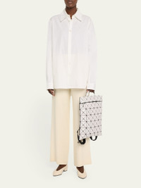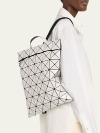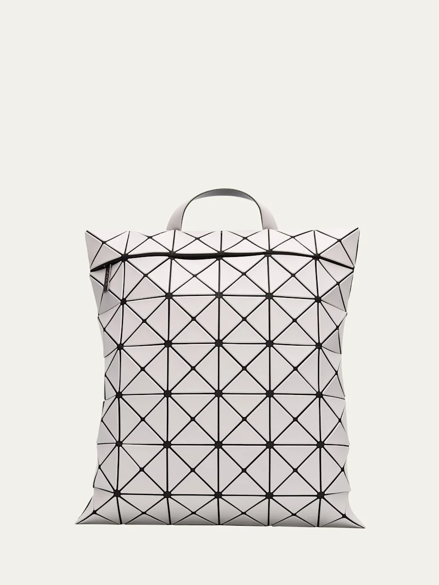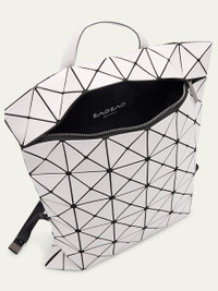 BAO BAO ISSEY MIYAKE flat backpack in geometric PVC, polyester, and nylon Top handle Adjustable shoulder straps Zip top closure Lining: Nylon Approx. 15.8"H x 13.4"W x 0.3"D Item Weight (Lbs.): 1.3 Wipe clean Made in Japan