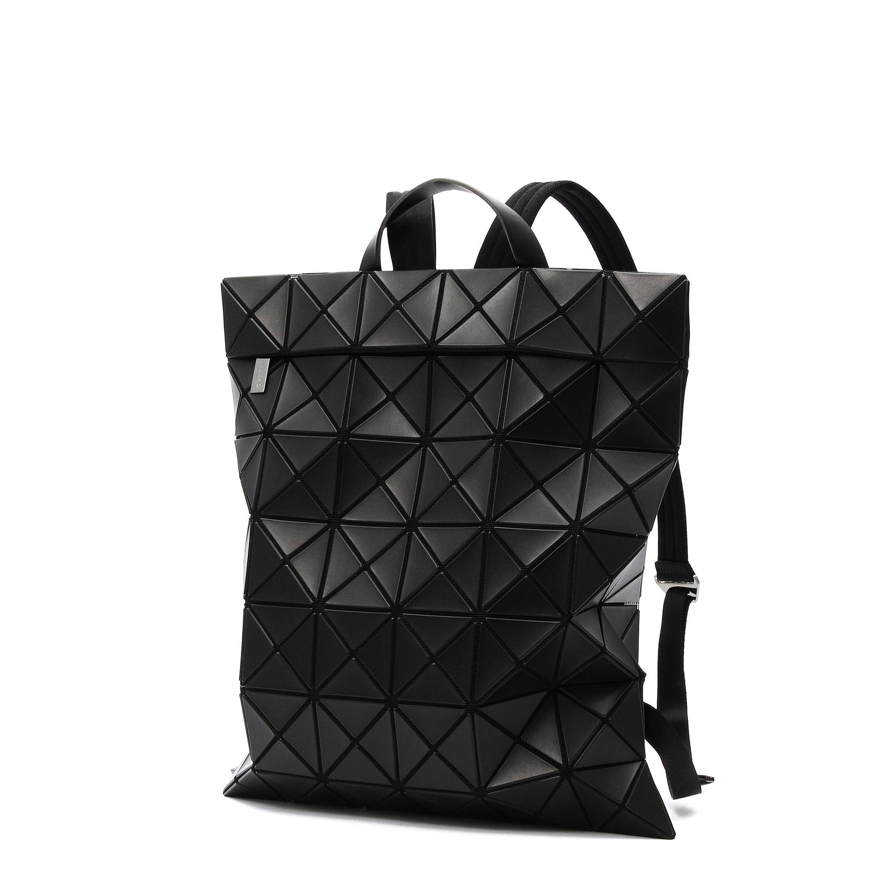 FLATPACK is a slim backpack converted from the popular LUCENT series. This backpack features a bottom gusset that expands when items are placed inside, creating a three-dimensional, yet clean aesthetic. It can fit A4 size documents or a 15" laptop vertically. It also includes a secure two-way zipper closure and adjustable nylon straps. Product Code: BB36-AG691 Material: Surface : Polyvinyl Chloride / Base : 100% Polyester / Tape : 100% Nylon / Part : Synthetic Leather Care: Wipe gently with a damp, tightly wrung soft cloth, and then wipe dry. Dimensions: 15.7 x 13.4 in.