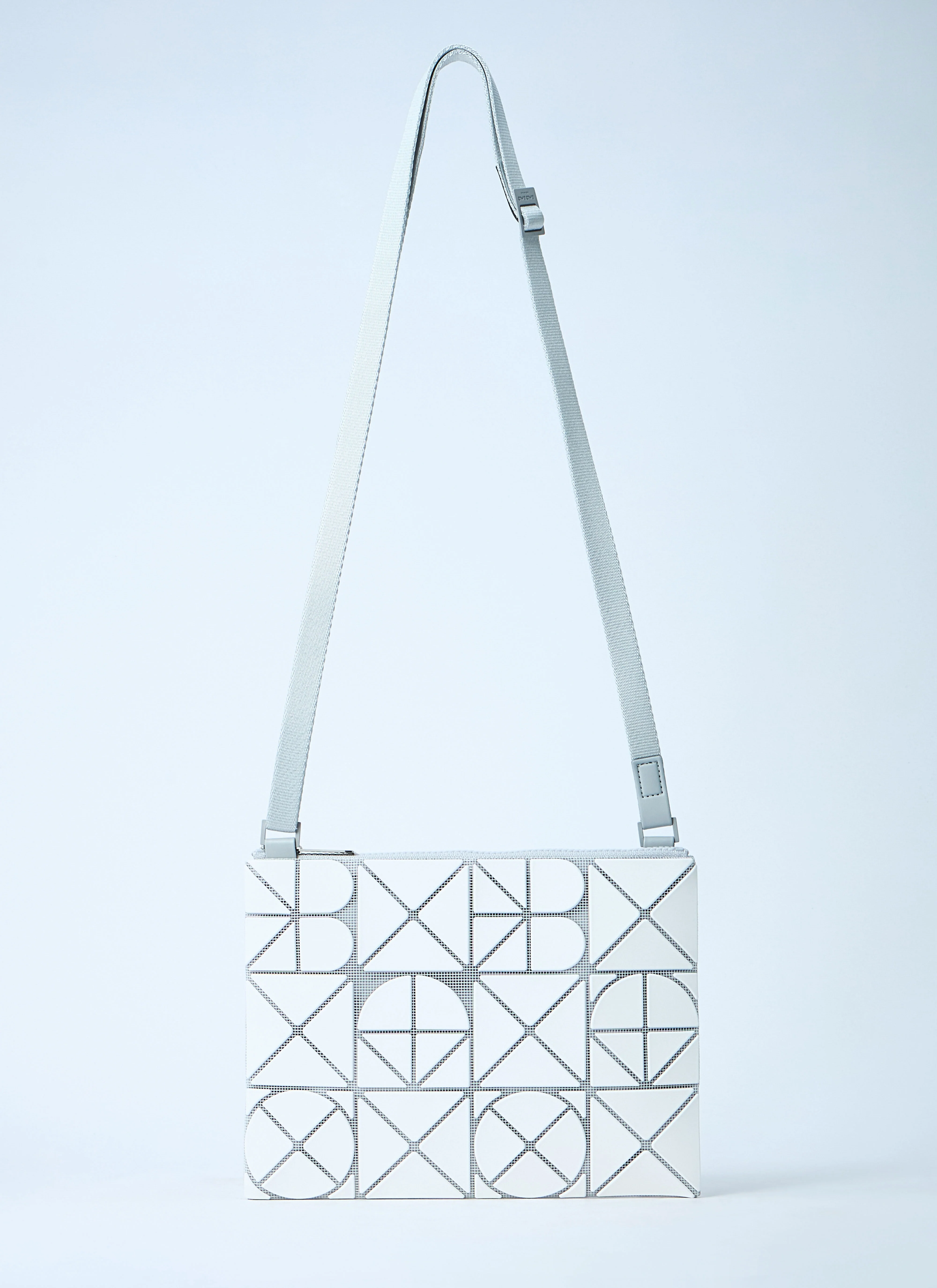 Font shoulder bag in signature triangular tiles. - Adjustable shoulder strap - Top zip fastening - Signature triangular tiles - One main compartment - Interior zip pocketFully lined - 100% Technical Fabrication Blend - Color: White - Code: BB56AG841-06