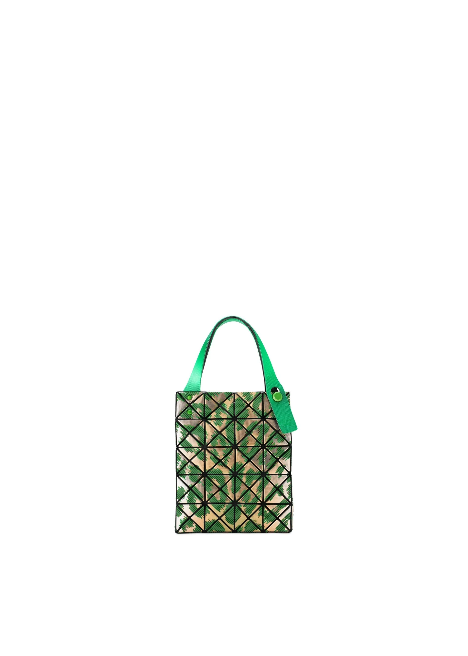 This mini tote bag is from the PLATINUM series that is made using metallic triangular pieces embossed with a fabric grain texture. It is characterized by its striped pattern that evokes spotted leopard fur, and vibrantly colored handles. The entire bag can be worn like a single accessory, and its luxurious feel makes it perfect for special occasions as well as an accent piece for everyday coordinating. Product Information Surface: Polyurethane; Base: 100% Polyester; Pocket: 100% Nylon; Partial Use: Artificial Leather, PVC Resin Made in Japan Inner pocket:can be Opening and closing section:magnet