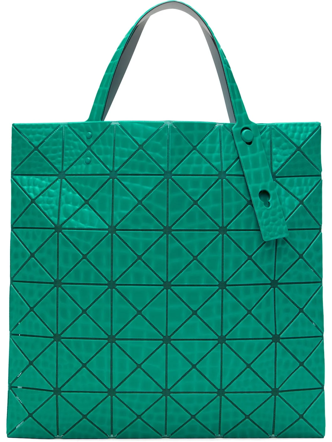 Mesh tote in green. · Croc-embossed signature triangular vinyl appliques throughout · Adjustable carry handles · Open throat · Zip pocket at interior · H13.5" x W13.5" Supplier color: Green Polyvinyl chloride, textile. Made in Japan 252730F049016
