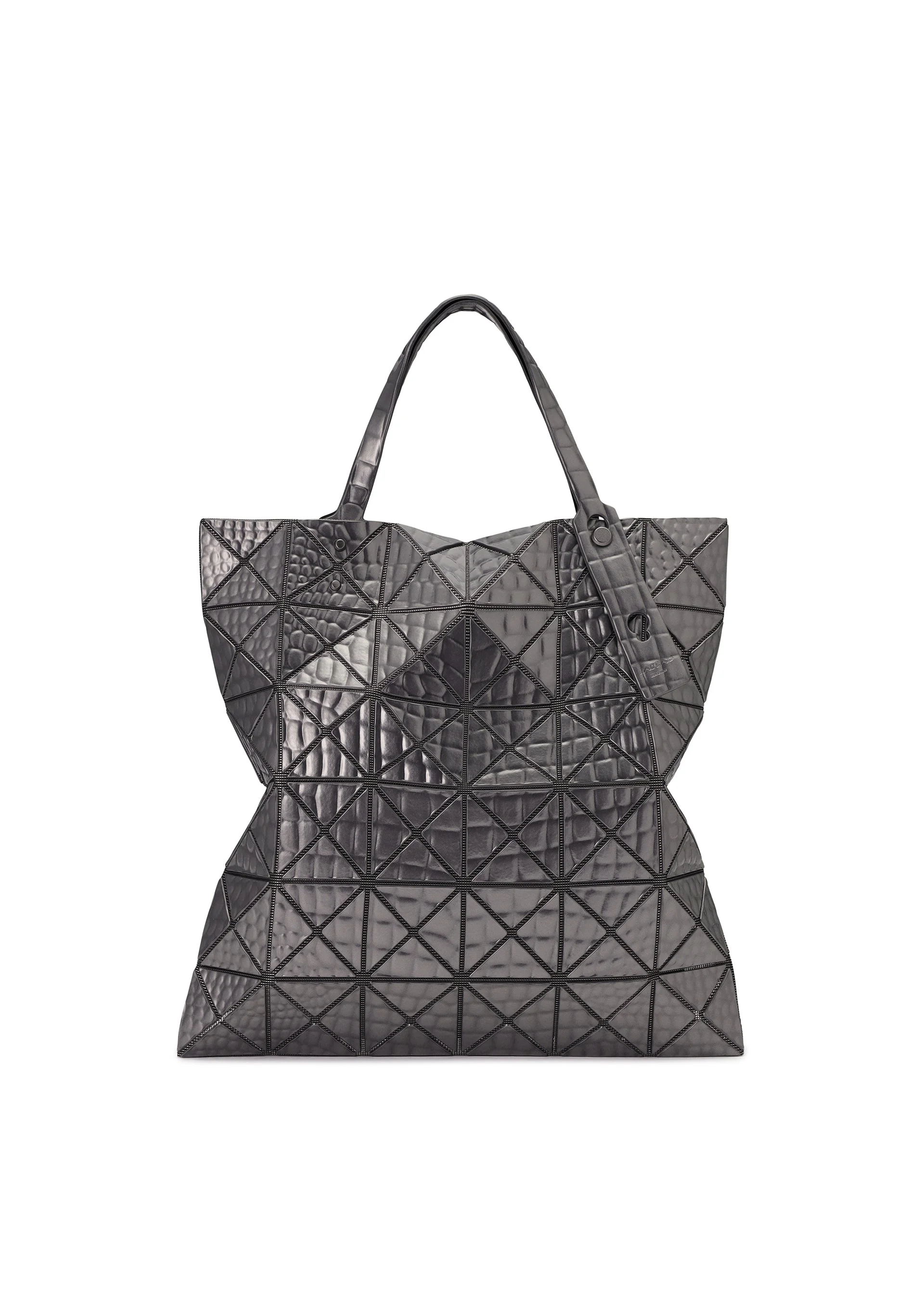 This tote bag has a texture reminiscent of a kaiju monster, which is achieved using a three-dimensional, embossed metallic material. The bumpy unevenness of the triangular pieces subtly expresses the shading of the colors. It is the perfect size to fit A4-sized documents and a 13-inch laptop. It also has a zippered inner pocket convenient for storing valuables like your wallet and keys. Product Information Surface: PVC; Base: 100% Polyester; Pocket: 100% Nylon; Partial Use: Synthetic Leather Made in Japan Inner pocket:can be