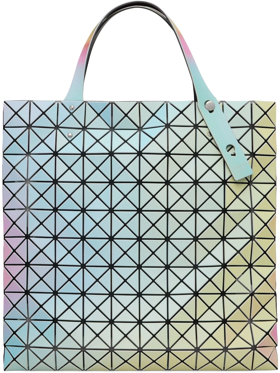 Mesh tote. · Triangular iridescent vinyl appliques throughout · Adjustable shoulder straps · Zip pocket at interior · H15" x W15" Supplier color: White base Textile, polyvinyl chloride. Made in Japan 252730F049000