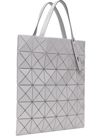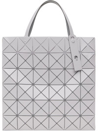 Sheer mesh tote in off-white. · Triangular glossy polymer appliques throughout · Twin adjustable faux-leather carry handles · Zip pocket at interior · Unlined · H13.5" x W13.5" Supplier color: Light gray Textile, polyvinyl chloride. Made in Japan 252730F049006