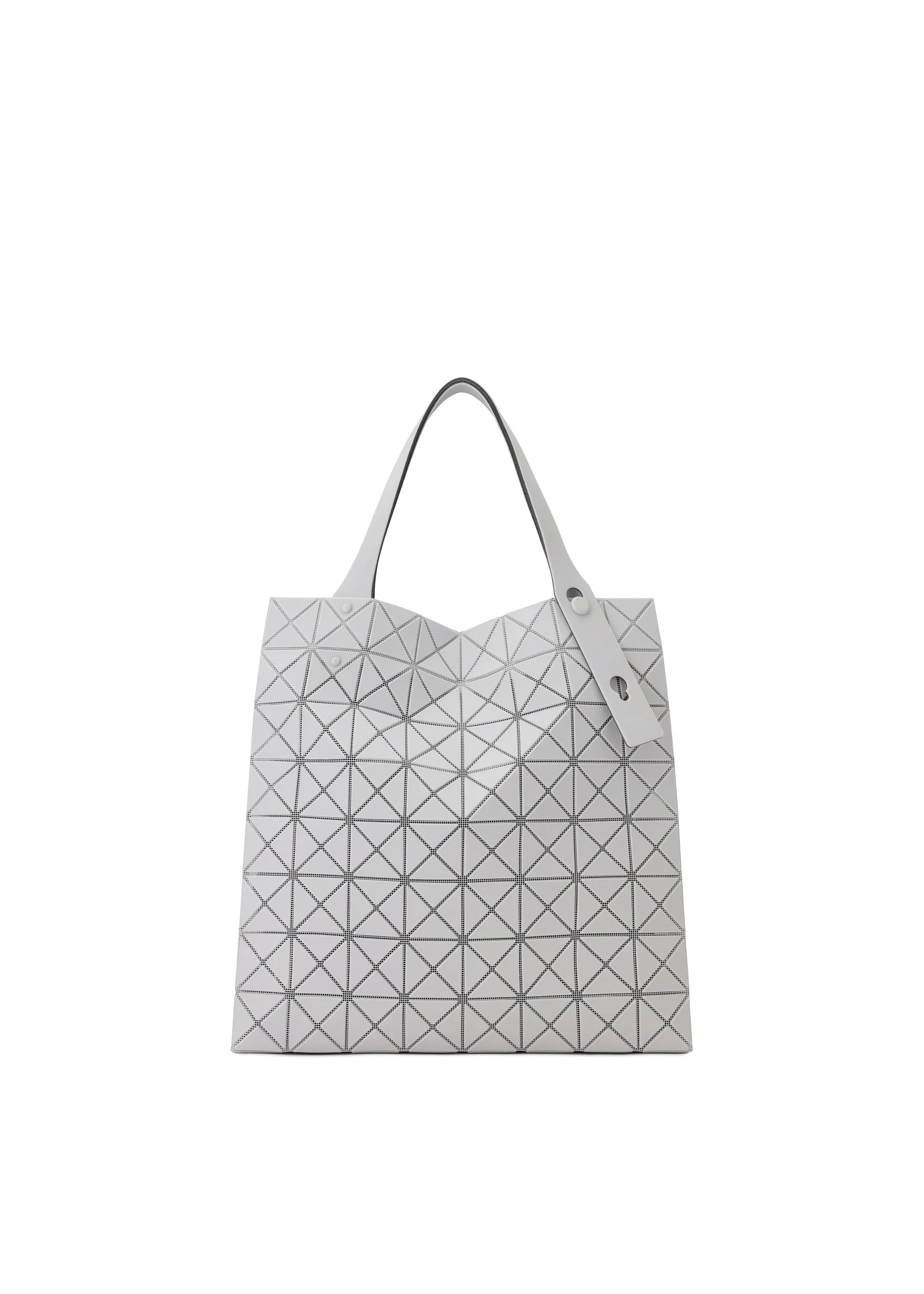 This PRISM series tote bag with gussets is made from material with a fabric grain-like texture. The triangular pieces, mesh, and metal fittings are all unified in one color tone. Like a shopping bag, the gussets fold inside at the sides so that the bag lies flat for storage, and are woven inward when items are inserted. Although it may look compact compared to the PRISM series, its storage capacity is nearly the same. Product Information Surface: PVC; Base: 100% Polyester; Pocket: 100% Nylon; Partial Use: Synthetic Leather Made in Japan Inner pocket:can be