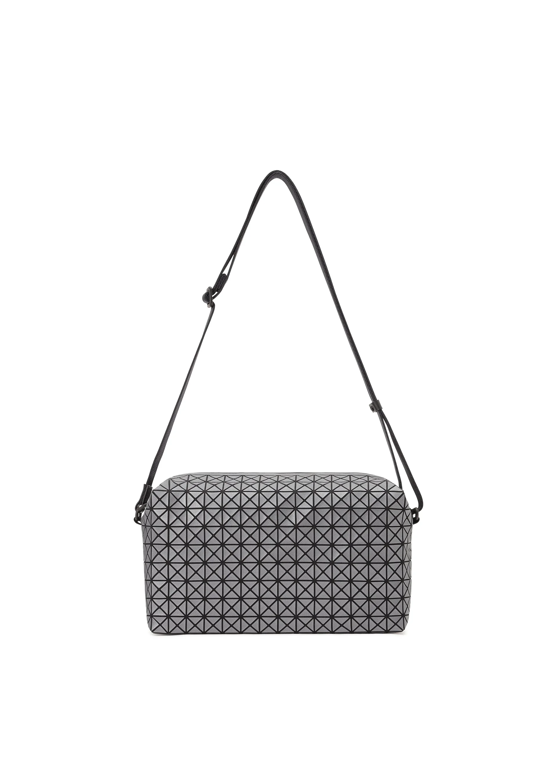 This KURO series box-shaped shoulder bag uses reflective material for the triangular pieces. When light hits the bag in the dark, its entire three-dimensional surface reflects the light. The metallic look of the material is apparent in bright places. This item is useful when you are on the move with minimal belongings. It has a zippered inside pocket convenient for storing valuables such as your wallet and keys. The design is made with a single piece of unlined, highly dense fabric. Product Information Base: 100% cotton (surface: polyurethane print) Pocket: 100% nylon Tape: 100% nylon Partial use: cowhide leather Made in Japan Inner pocket:can be Opening and closing section:fastener