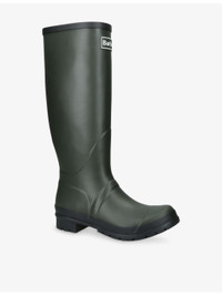 PRODUCT DETAILS - Barbour rubber wellington boots - 100% rubber - Round closed toe, branded patch to front, brand embossment to back, lugged sole - Wipe with a clean, dry cloth - Upper: 100% rubber - Lining: 100% rubber - Sole: 100% rubber Ref: R04510284
