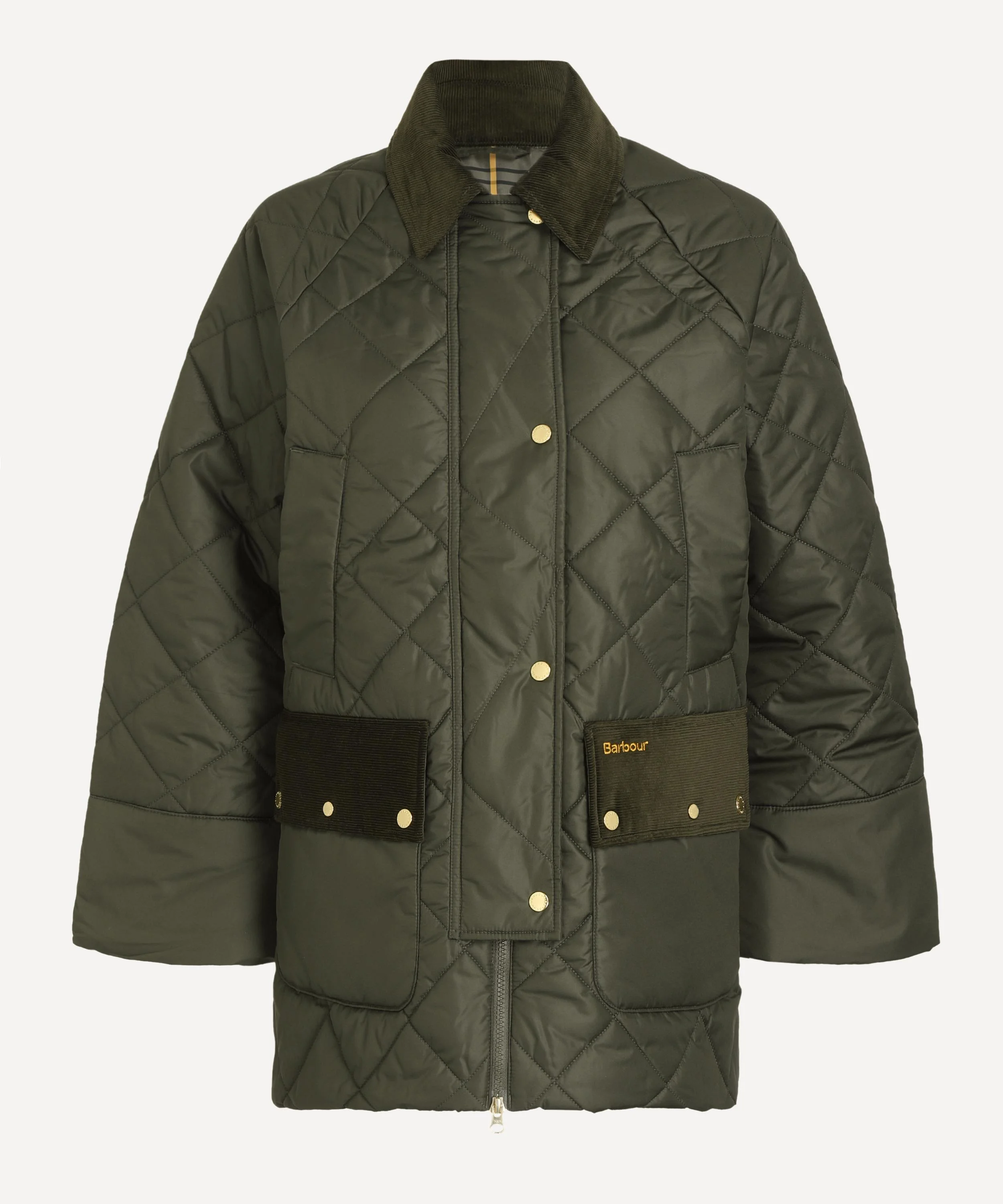DETAILS Quilted jacket Needlecord collar and pocket flaps Raglan sleeves Zip fastening Front bellow pockets Branding to left pocket Tartan lining SIZE & FIT Model is 176cm/5'9.5"; Chest: 81cm; Waist: 62.5cm; Hip: 89cm and wears a size 8 COMPOSITION & CARE Outer: 100% Polyester Lining: 100% Polyester Machine wash 30°C