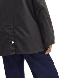 SIZE & FIT - Fits large, order one size down - Designed for a relaxed fit - Model measurements: 5'10" height, 33" bust, 25" waist, 35" hips, wearing a size small PRODUCT DETAILS - Corduroy collar - Long sleeves - Exposed front zip closure - Waxed design - Four patch pockets at front - Studded back vent - Tartan lining - Imported Web ID: 5198765 MATERIAL & CARE - Shell: 100% waxed cotton; lining: 65% polyester/35% cotton; collar: 100% cotton; sleeve lining: 100% polyester - Spot clean