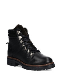 faux-fur trim lace-up boots Highlights - Black - Leather - Lace-up fastening - Lug sole - Pull tab Imported Composition Outer: Calf Leather 100%, Artificial Fur 100% Lining: Fabric 100% Sole: Rubber 100%