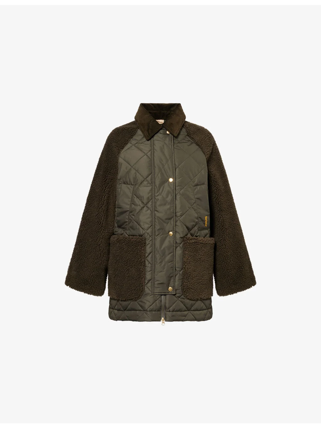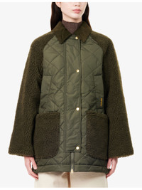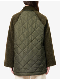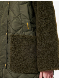 PRODUCT DETAILS - Barbour quilted-shell jacket - 100% polyester; trims 100% cotton - Zip fastening - Relaxed fit, cord collar, long raglan sleeves, all-over diamond quilting, contrast fleeces sleeves and pockets, two patch pockets at front, pocket at interior, fully lined - Machine wash cold - True to size - Size UK 8: length 32in / 81.2cm - Model is 5ft 10in/1.78m and wears a size UK 8 - Midweight, non-stretch Ref: R04563904
