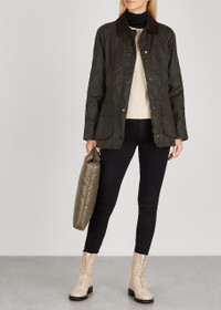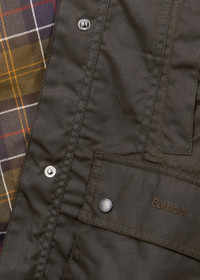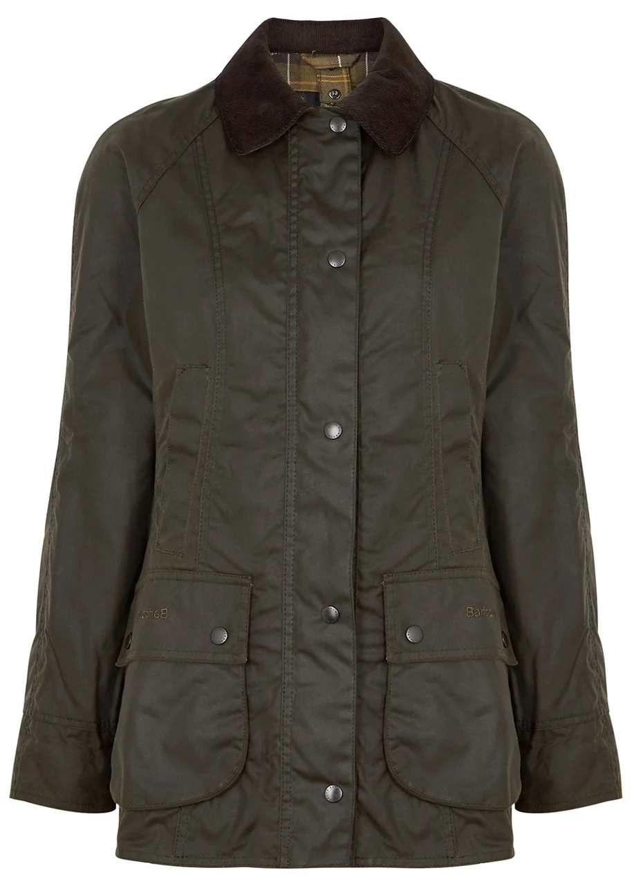 Style Notes Inspired by Barbour's iconic Bedale design, the Beadnell jacket is cut from Thornproof waxed cotton to a flattering slim silhouette. Lined with checked cotton, this traditional style is detailed with a corduroy collar and embroidered with the heritage label's logo at the pocket. Info & Care Barbour dark green Thornproof waxed cotton jacket Corduroy collar raglan sleeves side slip pockets embroidered designer stamp press-stud fastening front flap pockets checked turn-up cuffs two press-stud fastening back vents internal zipped pocket fully lined Concealed adjustable zip and press-stud fastenings through front 100% cotton (waxed); lining: 100% cotton Size & Fit Spot clean Length shoulder to hem: 27 inches/ 69cm Midweight Slim fit Model is 5'10"/ 178cm and wears a size UK8