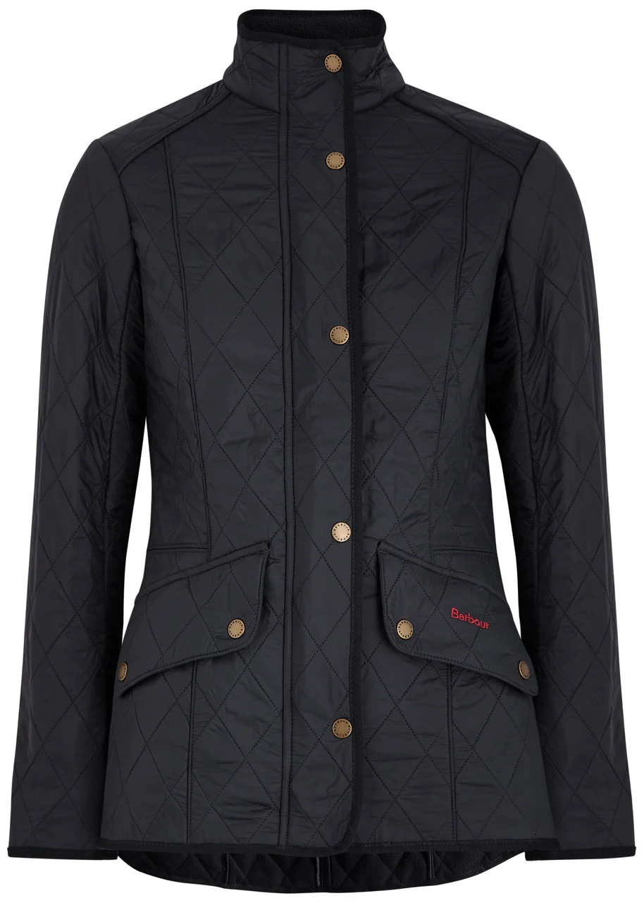Style Notes Barbour's Cavalry jacket is inspired by classic horse-riding styles. Worked to a slim fit with an elasticated waist, this shell style is made using the label's signature Polarquilt combination that fuses a diamond-quilted shell outwear with a soft fleece lining.; Info & Care Barbour shell jacket Quilted, high-neck, logo embroidery, partially elasticated waist, press-stud fastening front flap pockets, grosgrain trims, curved longer back hem, two internal patch pockets, fleece lining; Partially concealed press-stud and two-way zip fastenings through front 100% polyamide; lining: 100% polyester Machine wash; Size & Fit Length shoulder to hem: front: 26.5 inches/ 67.5cm; back: 28 inches/ 71.5cm Midweight Slim fit, fitted at the waist Model is 5'10"/ 178cm and wears a size UK8