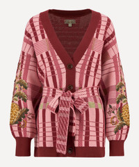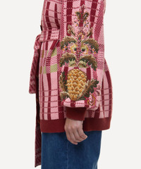 DETAILS Pink Tartan jacquard-knit cardigan Barbour x FARM Rio collaboration Oversized fit Dropped shoulders V-neckline Button closure Waist belt Pineapple embroidery to each arm Contrast ribbed trims Barbour x FARM Rio tag on the back COMPOSITION & CARE Outer: 100% Cotton Inner: 100% Cotton Do not wash. Sponge clean only