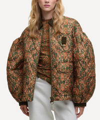 DETAILS Quilted jacket Barbour x FARM Rio collaboration Diamond-quilted Oversized fit Short-length Exaggerated, gathered sleeves Cord collar and trims Zip fastening Patch pockets D-ring Dual-branded studs Barbour x FARM Rio Pineapple print Barbour x FARM Rio patch to the chest COMPOSITION & CARE Outer: 100% Cotton Inner: 100% Cotton Do not wash. Sponge clean only