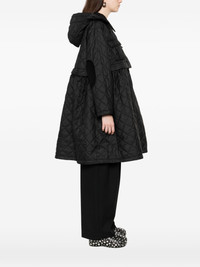 x Ganni quilted hooded coat Highlights - Black - Diamond quilting - Corduroy collar - Flap pockets - Hood - Check trim Imported Composition Outer: Polyester 100% Lining: Polyester 100% SIZE & FIT Model measurements Height 5 ft 11 in(1.8 m) Bust/Chest 32.28 in(82 cm) Hips 36.22 in(92 cm) Waist 25.19 in(64 cm) Washing instructions Machine Wash