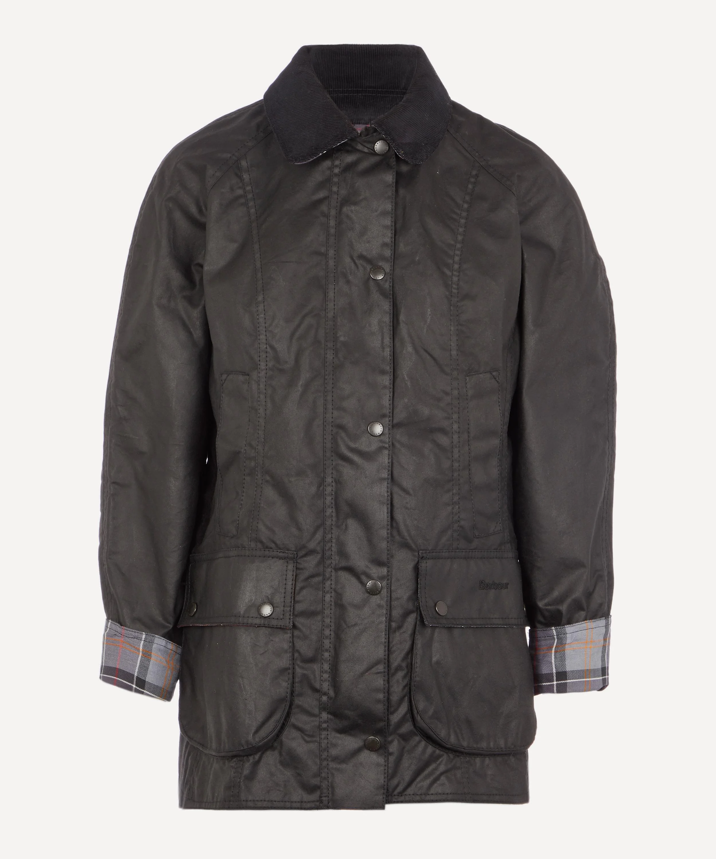 DETAILS Beadnell jacket Waxed Feminine cut Long sleeves Zip and press stud fastenings Corduroy collar Check lining Side and flap pockets SIZE & FIT Model is 178cm/5’10" and wears size 10 COMPOSITION & CARE Outer: 100% Cotton Inner: 100% Cotton Sleeve: 100% Polyester Dripstrip: 100% Polyester Trim: 100% Cotton Sponge clean only