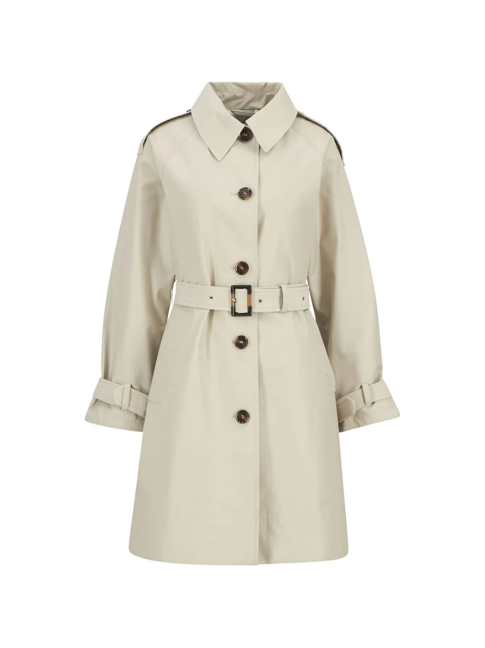 belted coat Highlights - Beige - Button fastening - Belt - Collar - Long sleeves - Slip pockets Made in United Kingdom Composition Cotton 61%, Polyamide 39%
