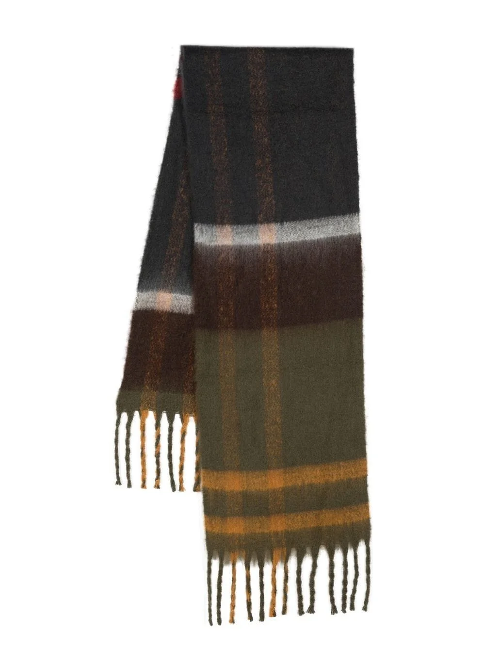 tartan-check knit scarf brown/dark green/navy blue knitted construction tartan check pattern fringed edge wraparound style Imported Composition Polyester 100% SIZE & FIT Measurement LENGTH 89.37 in(227 cm) WIDTH 14.17 in(36 cm) Washing instructions Hand Wash