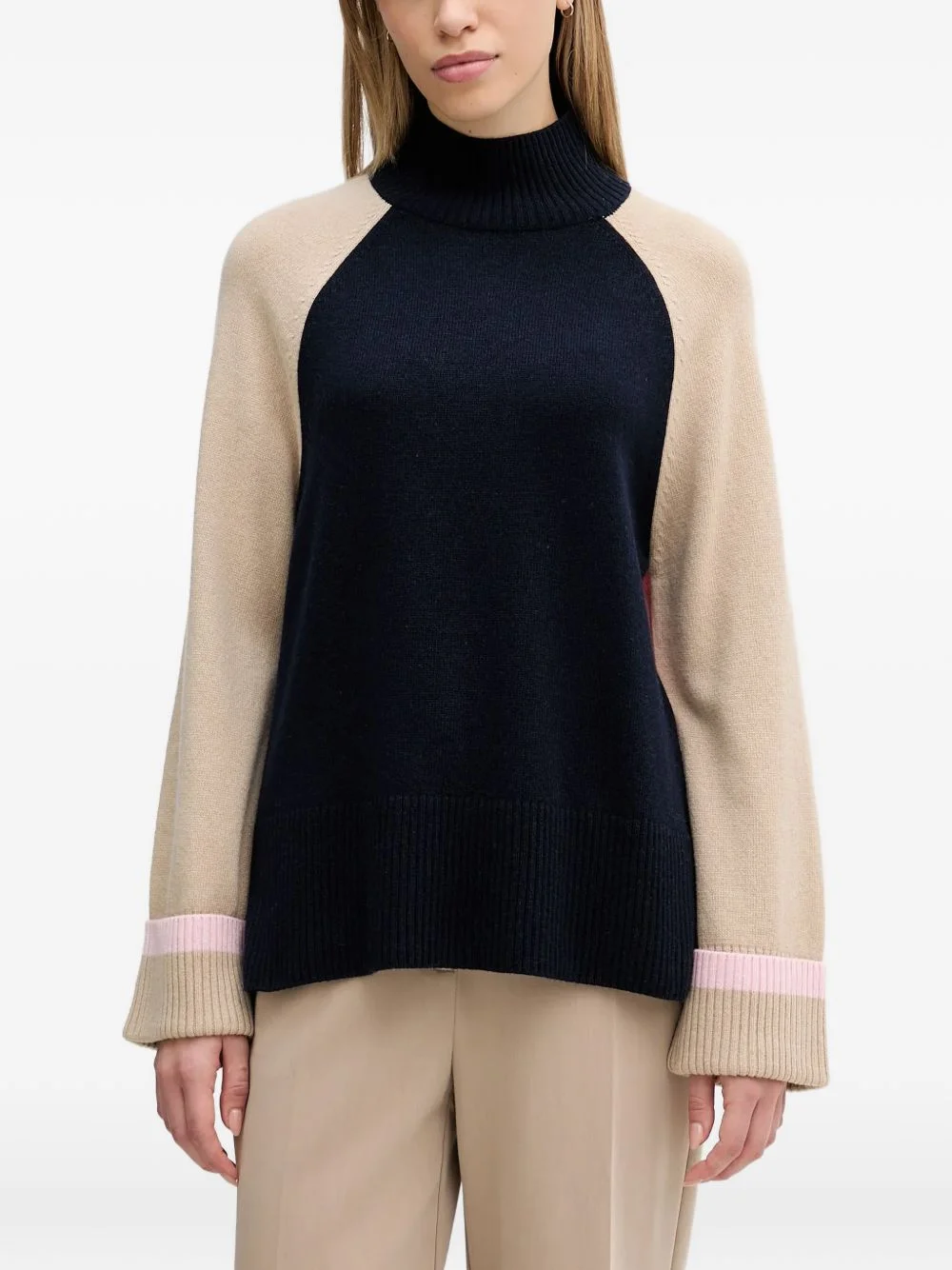 colour block roll-neck sweater Highlights - Beige and multicolour - Roll neck - Ribbed detailing - Long sleeves - Ribbed cuffs Imported Composition Lambs Wool 40%, Viscose 40%, Polyamide 20% Washing instructions Hand Wash