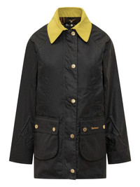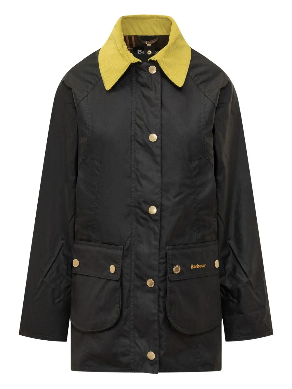 contrast-collar jacket Highlights - Black - Contrasting collar - Press stud fastening - Flap pockets - Long sleeves Made in United Kingdom Composition Cotton 100% Washing instructions Read Manufacturer Guidelines