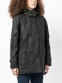 cotton hooded jacket dark green cotton high neck concealed front fastening long sleeves classic hood two side button-fastening pockets Imported Composition Cotton 100% SIZE & FIT Model measurements Height 5 ft 10 in(1.78 m) Bust/Chest 33.46 in(85 cm) Hips 35.43 in(90 cm) Waist 24.4 in(62 cm) FittingInformation This piece fits true to size. We recommend you get your regular size Cut for a loose fit Made with a mid-weight fabric Washing instructions Hand Wash
