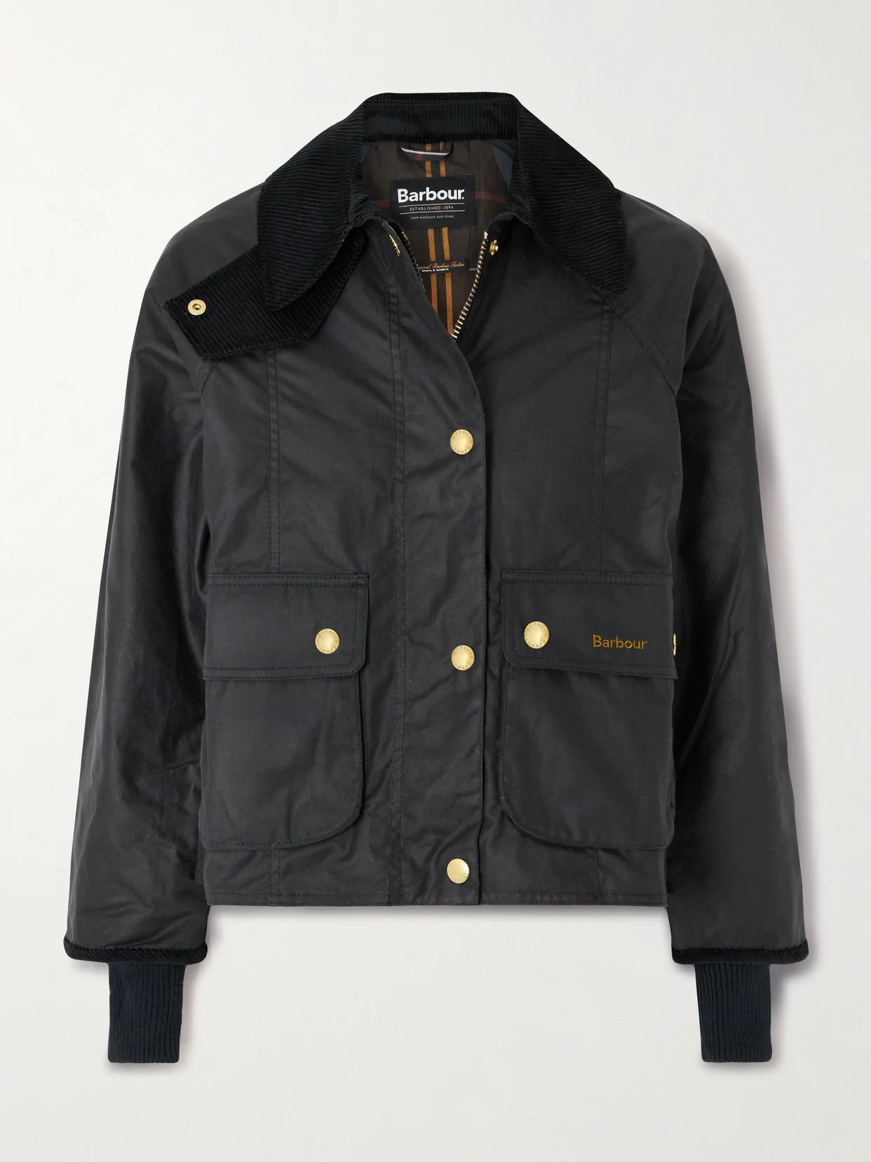 Cropped Corduroy-trimmed Waxed Cotton Jacket