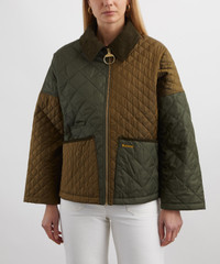 DETAILS Quilted jacket Patchwork construction Needlecord collar Dropped shoulders Zip fastening Oversized brass ring-pull zip Front patch pockets Branding to left pocket Tartan lining SIZE & FIT Model is 176cm/5'9.5"; Chest: 81cm; Waist: 62.5cm; Hip: 89cm and wears a size 8 COMPOSITION & CARE Outer: 100% Polyester Lining: 100% Polyamide Machine wash 30°C