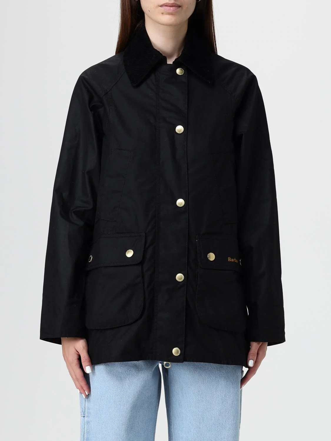 DESCRIPTION - Style: Casual, Sporty, Urban-street - Logo: Contrasting - Neck: Classic, Corduroy - Shoulders: Relaxed - Sleeves: Long - Closure: With zip and concealed buttons - Pockets: America , Patch pocket with flap and button - Bottom: With straight hemline - Length: Short jackets - Materials: Waxed cotton - Pattern: Logo, Plain-colored DETAILS AND CARE Composition not available SIZE AND FIT Sizes not available Size and fit Regular fit Designer code: LWX1402 BK71 Giglio Code: H25091 Designer: Barbour Collection: Barbour Woman Category: Clothing Barbour