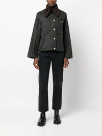 black cotton embroidered logo to the side stripe detailing gold-tone hardware spread collar front button fastening two side zip-fastening pockets long sleeves straight hem - sleeve length: 50.0 centimetres, length: 60.0 centimetres, waist: 112.0 centimetres, bust: 108.0 centimetres - Color: GREEN - Made in: Moldova, Republic of - Designer Style ID: LWX1333 SG51 Composition and care Outer Composition Cotton: 100.0%, Lining Composition Cotton: 35.0%, Lining Composition Polyester: 65.0%