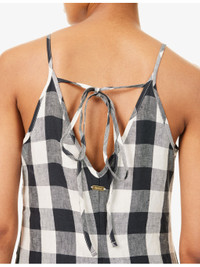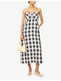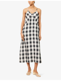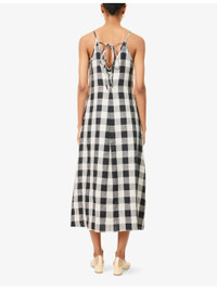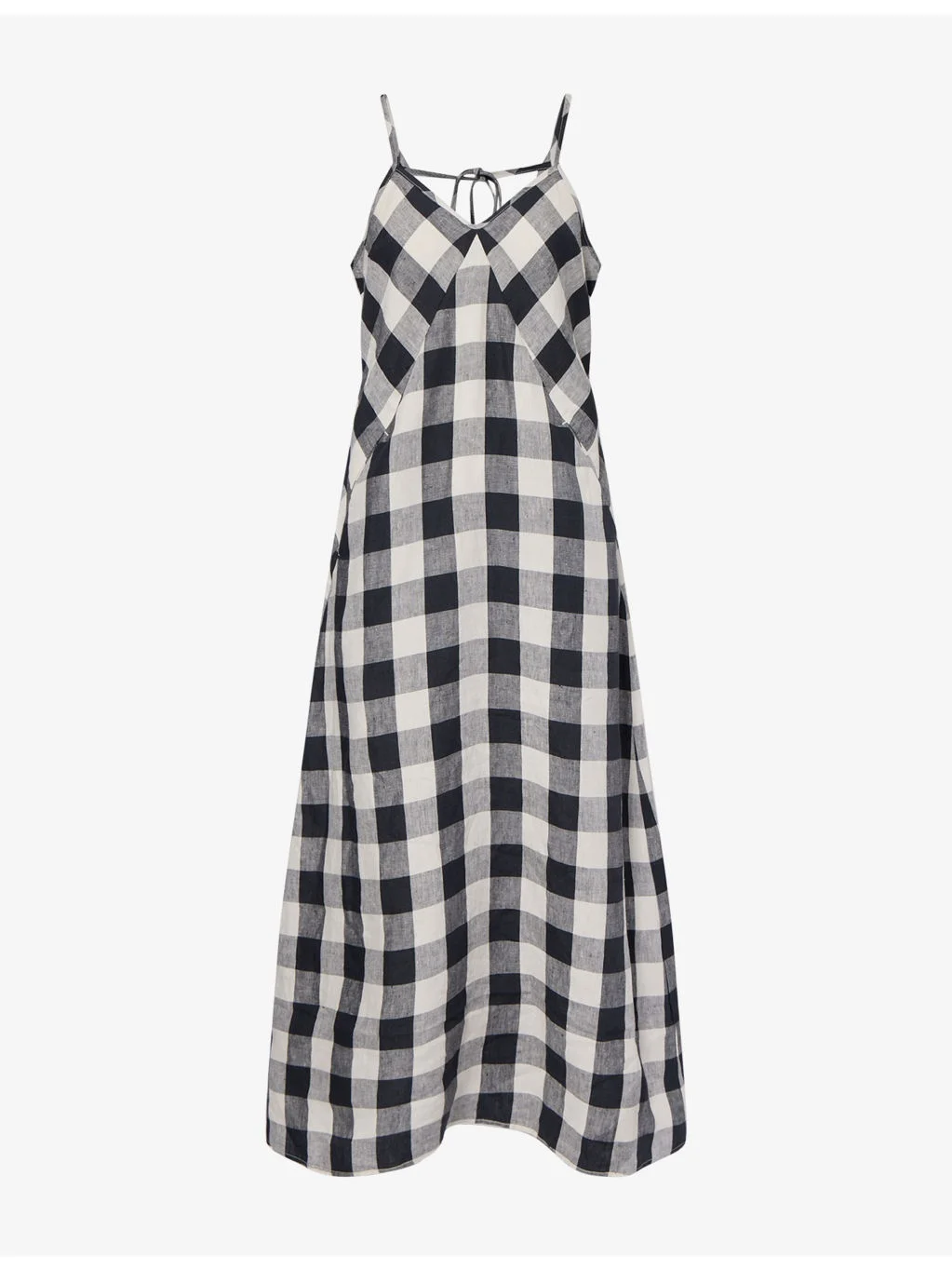 PRODUCT DETAILS - Barbour linen midi dress - 100% linen - Concealed zip fastening at side - Relaxed fit, V-neck, self-tie fastening at neck, shoulder straps, two slip pockets at front, brand plaque at back, all-over check print, flared hem - Machine wash at 30°C - True to size - Size UK 8: length 50in / 128cm - Model is 5ft 10in/1.78m and wears a size UK 8 - Lightweight, stretchy Ref: R04491493
