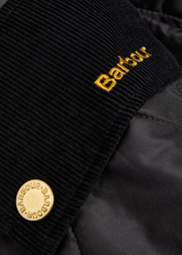 Info & Care Barbour shell jacket Quilted, detachable push-stud fastening drawstring hood with tartan lining, ribbed cuffs, press-stud fastening flap pockets, press-stud fastening sides at hem, corduroy trims, designer hardware, internal zip-fastening pocket, fully lined Partially concealed zip and press-stud fastenings through front 100% recycled polyester; trims: 100% cotton; fill: 100% recycled polyester Machine wash Size & Fit Length shoulder to hem: 40 inches/ 101.5cm Midweight Regular;fit Model is 5'9"/ 175cm and wears a size;UK8