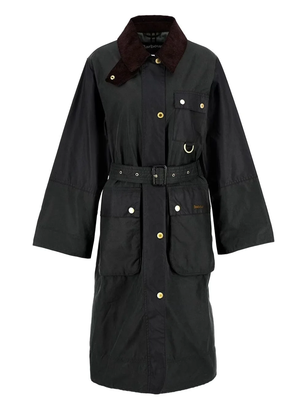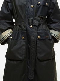 belted tartan-cuff coat Highlights Imported Composition Polyester 100%