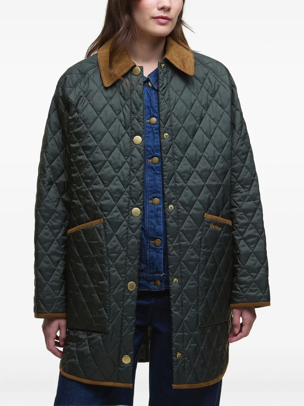 quilted corduroy-collar coat Highlights - Green - Corduroy collar - Quilted - Button fastening - Front patch pocket - Long sleeves Imported Composition Fabric 100% Washing instructions Read Manufacturer Guidelines