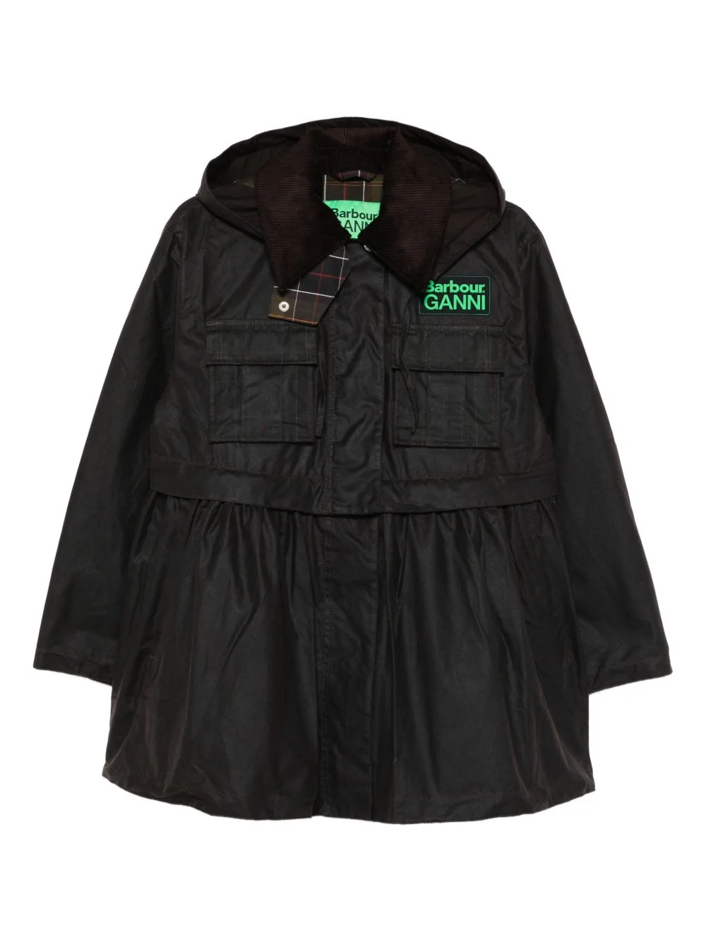 x Ganni peplum waxed coat Highlights - Rustic brown - Corduroy collar - Hooded - Square pockets - Logo patch Imported Composition Outer: Cotton 100% Lining: Polyester 65%, Cotton 35% SIZE & FIT Model measurements Height 5 ft 11 in(1.8 m) Bust/Chest 32.28 in(82 cm) Hips 36.22 in(92 cm) Waist 25.19 in(64 cm) Washing instructions Dry Clean Only