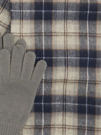 plaid gloves scarf Highlights - Grey - Plaid pattern - Gloves - Scarf - Ribbed knit Imported Composition Lambs Wool 100%