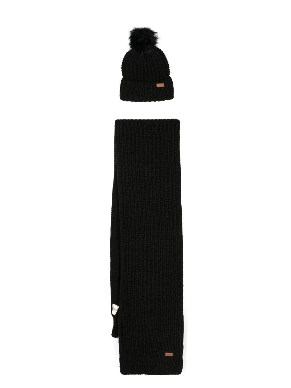 ribbed-knit scarf & beanie set Highlights - Black - Chunky ribbed knit - Logo patch to the front - Pompom detail - Wraparound style - Two separate pieces Made in Italy Composition Acrylic 100% SIZE & FIT Measurement LENGTH 66.92 in(170 cm) WIDTH 11.81 in(30 cm) Washing instructions Hand Wash