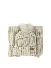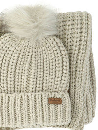 Barbour's "Saltburn" set is the ideal winter accessory for the modern woman who wants to combine practicality and style. Consisting of a beanie and scarf, this set sports a classic design and thick ribbed knit fabrication that provides comfort and protection against the cold. Barbour's timeless elegance is reflected in every detail, making these pieces a must-have for the winter wardrobe. - Scarf: 25x170 cm - Classic ribbed knit design - Leather logo scarf patch - Folded lapel beanie - Faux fur beanie pom-pom For a complete look, pair this set with a long wool coat and a pair of knee-high boots. For a classy finishing touch, choose a leather tote bag. This versatile set is perfect for both casual outings and more elegant occasions, always ensuring a polished and chic look. - Colour: Beige - Composition: 100% acrylic - Country Of Manufacture: United Kingdom - Dimension: 25x170 cm - Extra Description: 25x170 cm - MPN: LGS0023LGSST15