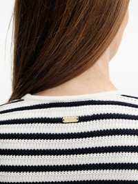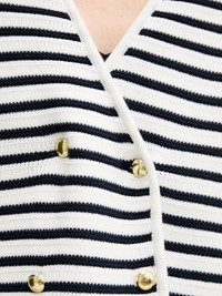 striped double-breasted cardigan Highlights - Off-white - Navy blue stripes - Double-breasted fastening - Gold-tone buttons - Long sleeves - Ribbed trims Imported Composition Cotton 100% Washing instructions Read Manufacturer Guidelines